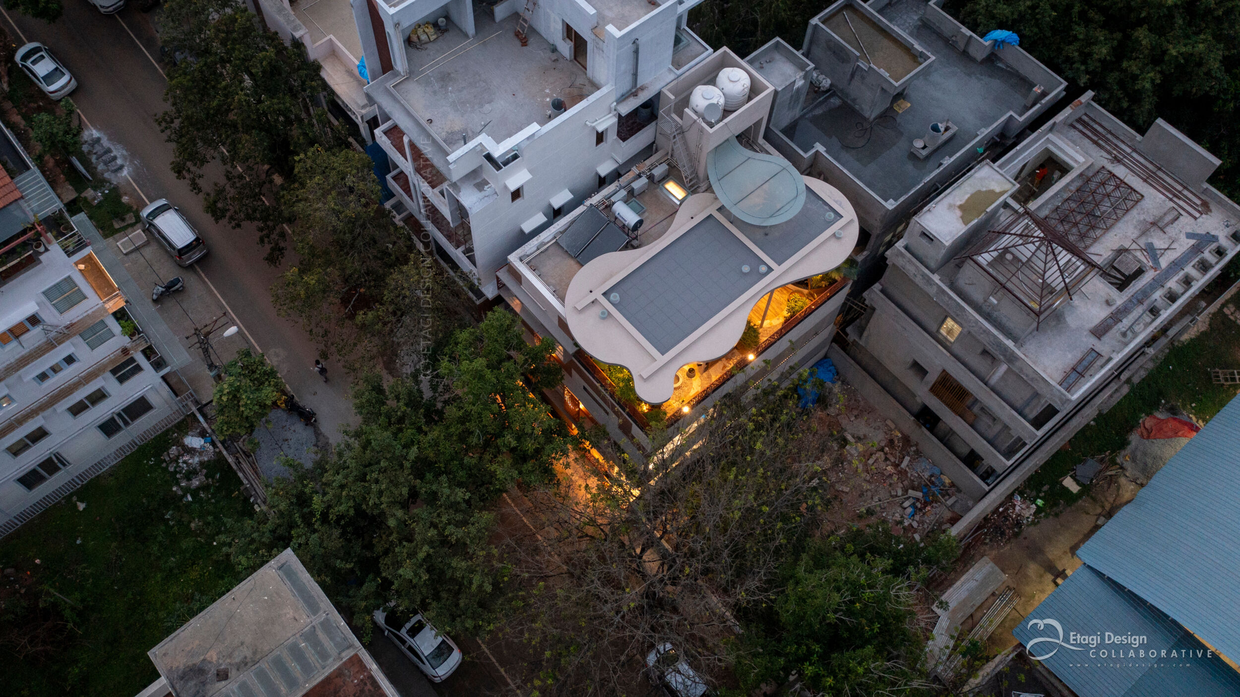 Renovated after 18 years, the Besugé residence in Jakkur, North Bangalore, showcases a harmonious blend of aesthetics and functionality. Spanning 3500 sq. ft., this 30' x 40' plot underwent extensive remodeling, surpassing the occupants initial expectations. "Besugé" meaning "bonding" in Kannada, symbolizes the strong connection between the occupants, architects, and contractors, reflecting a successful collaboration in achieving architectural excellence. Etagi Design Collaborative cherishes the unique project and hopes for continued bonding in future endeavors.